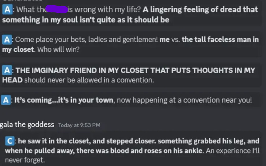 for no good reason this is making me think of the cah horror story