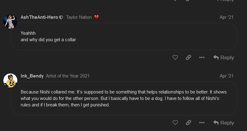 He did not collar him whatsoever, he was just dating him online, bendy put that on himself because he had a dog.
